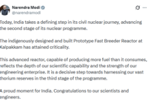 तमिलनाडु के कलपक्कम स्थित 500 मेगावॉट ‘प्रोटोटाइप फास्ट ब्रीडर रिएक्टर’ परियोजना ने एक और मील का पत्थर पार कर लिया…