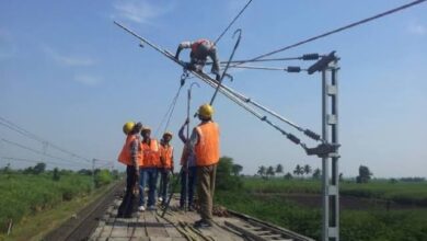 दपूमरे के गंगाझरी स्टेशन में तीसरी रेल लाइन में विद्युतीकरण का कार्य