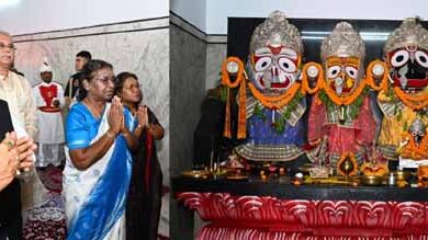 राष्ट्रपति द्रौपदी मुर्मु गायत्री नगर स्थित भगवान जगन्नाथ मंदिर में की पूजा अर्चना