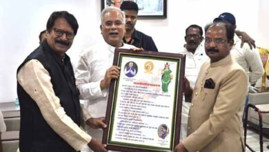 मुख्यमंत्री को छत्तीसगढ़ संस्कृत विद्यालयमंडलम के अध्यक्ष ने स्वरचित माता छत्तीसगढ़ वंदना की प्रति भेंट की