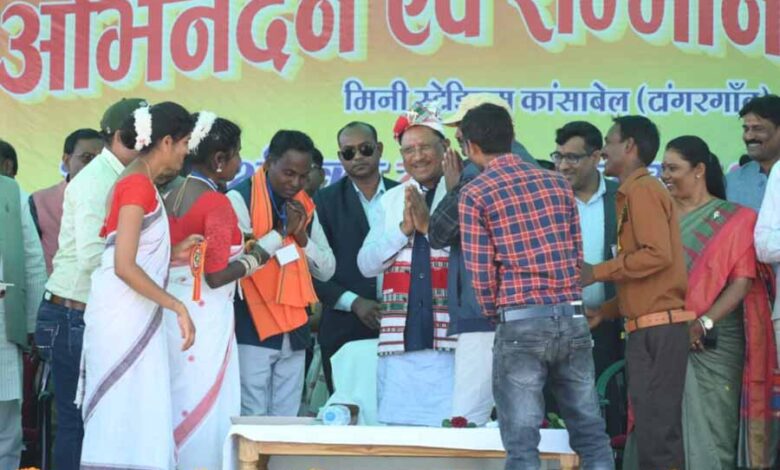 इससे पूर्व जशपुर के टांगरगांव में आयोजित अंशकालीन सफाई कर्मचारी कल्याण संघ अभिनंदन सम्मान समारोह में शामिल होने पहुंचे मुख्यमंत्री श्री विष्णु देव साय का लोगों ने ढोल बाजे एवं पारंपरिक करमा नृत्य से कियाभव्य स्वागत किया। जशपुर जिले के कांसाबेल के टांगरगांव मिनी स्टेडियम में आयोजित स्वागत और अभिनंदन समारोह में मुख्यमंत्री का सम्मान करने के लिए यहां बड़ी संख्या में स्कूल कर्मचारी संघ, सफाई कर्मचारी संघ, लघु वनोपज सहकारी संघ, आंगनबाड़ी सहायिका संघ, रसोईया संघ, और बड़ी संख्या में आमजन मौजूद थे।