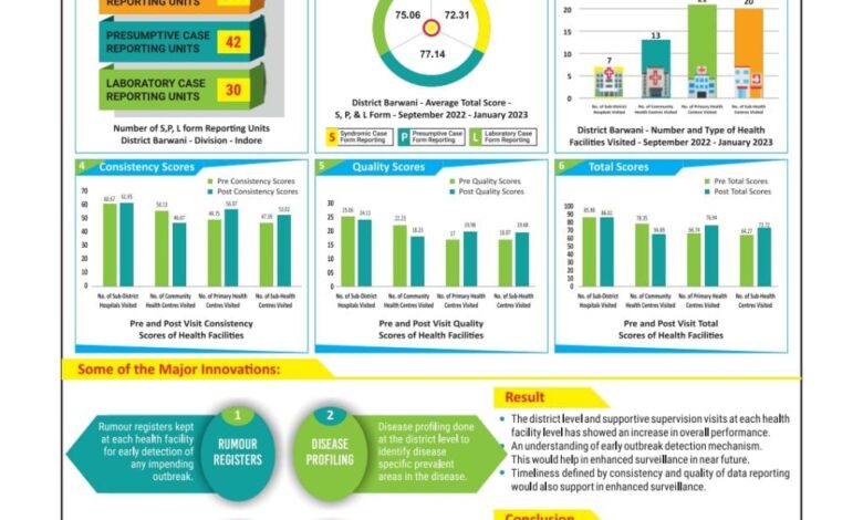बड़वानी जिले के पोस्टर को सेन्ट्रल स्तर पर प्रदर्शित किया जाएगा। डिसीज सर्विलेंस के लिये किये गये नवाचारों को सभी जिलो में लागू किया जाएगा। जिले में होने वाली डिसीज सर्विलेंस को बहुत ही कम समय मे बॉटम में आने वाली संस्थान में डॉ लक्ष्मी माहोर द्वारा विजिट कर सर्विलेंस की क्वालिटी को बढ़ाया गया, जो कि सभी जिलो में बहुत कारगर सिद्ध हुआ।