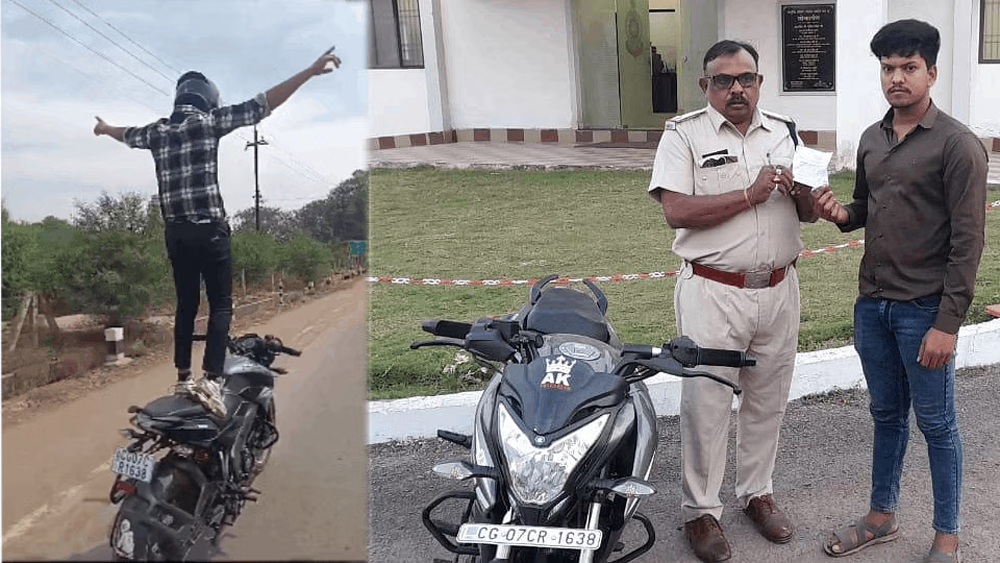 जिले में बाइक स्टंटबाजों के खिलाफ लगातार कार्रवाई की जा रही है। इसी कड़ी में मरोदा ओवर ब्रिज के आगे व्यस्ततम मार्ग पर एक युवक को सीट पर खड़े होकर बाइक चलाना भारी पड़ गया। युवक का स्टंट का वीडियो सोशल मीडिया पर तेजी से वायरल हो रहा है। यातायात पुलिस के हेल्पलाइन नंबर पर वीडियो पहुंचा और वीडियो के आधार पर वाहन नंबर सीजी 07 सीआर 1638 के चालक की पहचान हुई।