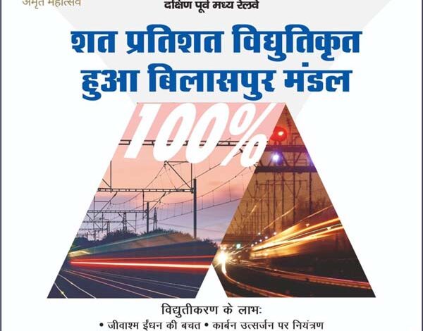 बिलासपुर रेल मंडल पर शत-प्रतिशत विद्युतीकरण के साथ सालाना लाखों टन कार्बन फुटप्रिंट की बचत