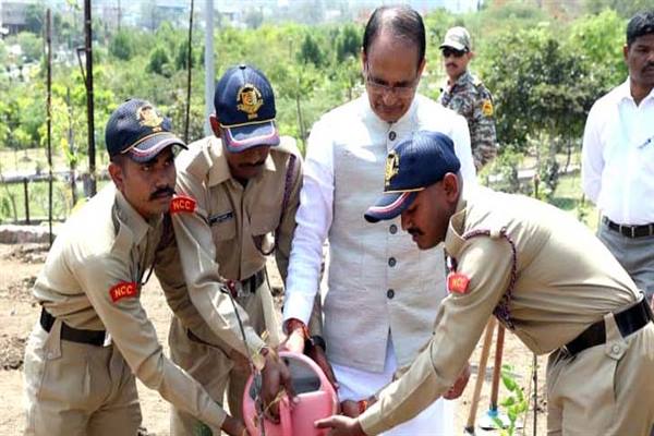 मुख्यमंत्री चौहान ने आँवला, गुलमोहर और पीपल के पौधे रोपे