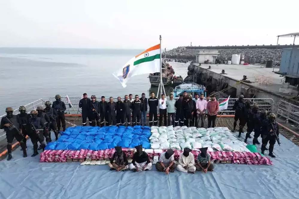 भारत की समुद्री सीमा में अब तब की सबसे बड़ी ड्रग की खेप पकड़ी गई है। भारतीय नौसेना ने इंडियन कोस्ट गार्ड्स और गुजरात एटीएस के साथ संयुक्त ऑपरेशन में 3100 किलोग्राम ड्रग पकड़ा है। ड्रग की इस बड़ी खेप की बरामदगी गुजरात के पाेरबंदर के पास भारतीय समुद्री सीमा में हुई है। इस ड्रग्स की इंटरनेशनल मार्केट वैल्यू 2000 करोड़ रुपये से ज्यादा होने का अनुमान है, लेकिन जखीरे के लिहाज से अब तक का सबसे बड़ा ड्रग्स कंसाइनमेंट हैं