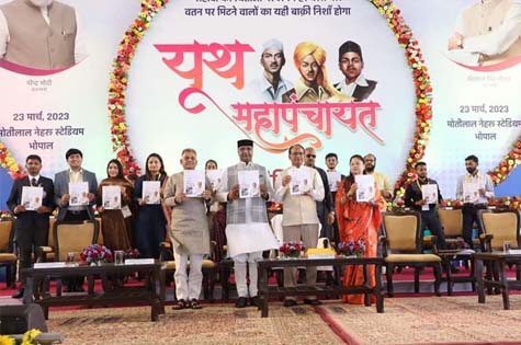मुख्यमंत्री शिवराज सिंह चौहान में भोपाल के मोतीलाल नेहरू स्टेडियम में आयोजित यूथ महापंचायत में नई युवा नीति की घोषणा की। समारोह में मुख्यमंत्री ने विभिन्न क्षेत्रों में श्रेष्ठ प्रदर्शन करने वाले युवाओं को सम्मानित किया। समारोह के शुभारंभ में मुख्यमंत्री चौहान ने शहीद भगत सिंह, सुखदेव तथा राजगुरू के चित्रों पर पुष्पांजलि अर्पित कर उनके बलिदान को नमन किया। समारोह में मुख्यमंत्री ने कहा कि देश के स्वतंत्रता संग्राम में युवाओं का महत्वपूर्ण योगदान है। देश के हजारों क्रांतिकारियों ने अपने प्राणों का बलिदान दिया।
