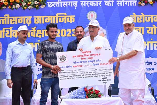 मुख्यमंत्री श्री भूपेश बघेल ने रायपुर स्थित अपने निवास कार्यालय से प्रदेश में बेरोजगारी भत्ता योजना का शुभारंभ किया। इस मौके पर मुख्यमंत्री ने चार पात्र बेरोजगार युवाओं को बेरोजगारी भत्ता स्वीकृति आदेश भी प्रदान किया। इस अवसर पर मुख्यमंत्री ने कहा कि बेरोजगारी भत्ता योजना को उन्होंने युवाओं के हित में विधानसभा सत्र में घोषणा की थी और आज वित्तीय वर्ष के पहले ही दिन उसे लागू भी कर रहे हैं ताकि पात्र युवा इसका लाभ ले सकें।