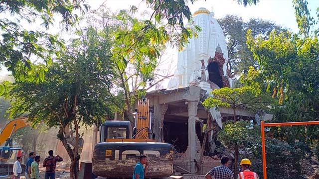 मध्य प्रदेश में इंदौर के बेलेश्वर महादेव मंदिर में हादसे के बाद नगर निगम ने बड़ी कार्रवाई की है। नगर निगम की टीम ने सोमवार सुबह यहां के अवैध निर्माण को तोड़ दिया। बावड़ी के साथ मंदिर को भी बुलडोजर से ढहा दिया गया है। मंदिर तोड़े जाने से नाराज बजरंग दल के कार्यकर्ता इसके खिलाफ प्रदर्शन कर रहे हैं। रामनवमी के दिन मंदिर के पास वावड़ी की छत ढहने से 36 लोगों की मौत हो गई थी जबकि 18 लोग घायल हुए थे।