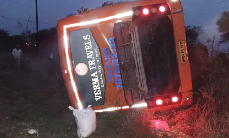 नीलगाय को बचाने में सोनकच्छ में पलटी बस, 10 यात्री घायल