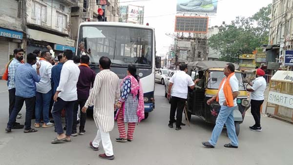 बंद को लेकर विश्व हिंदू परिषद और बजरंग दल सुबह से ही सड़कों पर आये और दुकानें नही खुलने दी प्रदर्शनकारियों ने भाटागांव बस स्टैंड से बसों को नहीं चलने दिया और जो बसें जाने को तैयार थी उन बसों पर पत्थरबाजी कर तोडफोड की जिसके बाद पुलिस बल को बुलाया गया। सुबह 5 बजे से ही प्रदर्शनकारी बाजार बंद करवाने के लिए निकले । शहर के सभी प्रमुख बाजारो मे बडी संख्या में धमक दे रहे थे और इस दौरान जो भी दुकान खुली दिखाई दी उसे उन्होने बंद करवा दिया। स्कूल कालेज के दरवाजों पर ताला खुला ही नहीं। दोपहर तक पूरे शहर में सन्नाटा पसरा हुआ था।