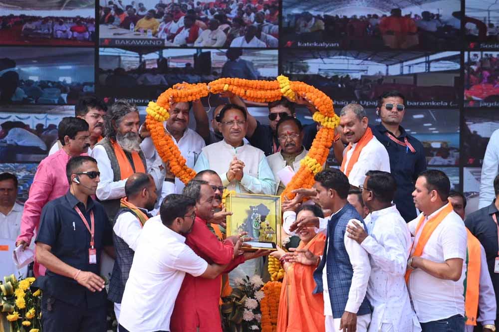 कार्यक्रम में वर्चुअली जुड़ कर मध्यप्रदेश के मुख्यमंत्री डॉ. मोहन यादव ने कहा कि मोदी जी के नेतृत्व में देश चहुमुखी विकास कर रहा है। मोदी जी हर विभाग के लिए जनता के हित में बहुत सारे पैसे दे रहे हैं, इन पैसों को खर्च करने में हमारे पसीने छूट जाते हैं। मोदी ने महिलाओं का सम्मान किया, किसानों के लिए ऐसी योजनाएं बनाई जिनसे उन्हें आर्थिक मजबूती मिली। छत्तीसगढ़ का विकास अब जेट गति से आगे जाएगा। छत्तीसगढ़ की जनता ने अच्छे-अच्छे गणित फैल कर दिए। 15 साल छत्तीसगढ़ में डॉ. रमन सिंह की सरकार रही। चारो तरफ विकास हुआ। छत्तीसगढ़ में महज तीन महीने सरकार बने हुई है, इन तीन महीनों में काम बड़ा आगे बढ़ा। ऐसा लग रहा है मानो छत्तीसगढ़ में धन की बरसात हो रही है। 22 जनवरी का दिन कोई नहीं भूल सकता, 500 वर्षों के कड़े संघर्ष के बाद आज अयोध्या में सरयू नदी के तट पर हमारे श्रीरामलला मुस्कुरा रहे हैं।