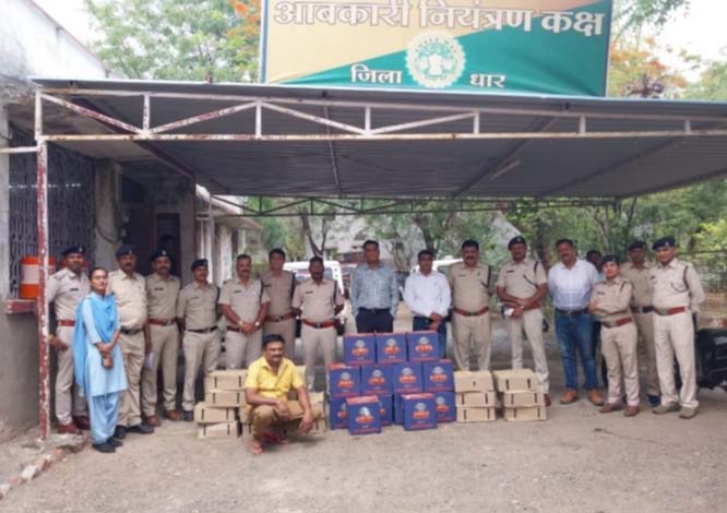 आबकारी वृत धार के मगजपुरा वार्ड क्रमांक-9 मे त्वरित कार्यवाही की जाकर धार स्थित भगवान पिता खेमराज के रहवासी मकान की रसोई से 13 पेटी लेमोंट बीयर बोतल, 12 पेटी देसी प्लेन मदिरा तथा 4 पेटी देसी मसाला मदिरा कुल 245.4 बल्क लिटर मदिरा जप्त कर आरोपी भगवान के विरुद्ध मध्य प्रदेश आबकारी अधिनियमों के तहत प्रकरण पंजीबद्ध किया गया। जप्त की गई मदिरा की अनुमानित कुल कीमत लगभग 85 हजार है। अवैध मदिरा कहां से लाई गई, इसके स्त्रोत की जांच की जा रही है।