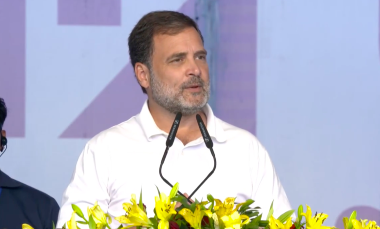 राहुल गांधी ने बस्तर में जनसभा को संबोधित किया।