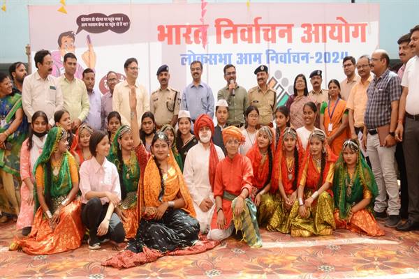 ग्वालियर में “मोको करनो है मतदान कि पोलिंग ले चल लांगुरिया” लोकगीत की धुन पर स्थानीय शासकीय पद्माराजे कन्या उच्चतर माध्यमिक विद्यालय की छात्राओं ने मतदान पर केन्द्रित संगीतमयी नृत्य नाटिका प्रस्तुत कर सभी को मंत्रमुग्ध कर दिया। साथ ही सभी को मतदान जरूर करने का संदेश दिया। मुख्य निर्वाचन पदाधिकारी श्री अनुपम राजन एवं कमिश्नर ग्वालियर डॉ. सुदाम खाड़े सहित कार्यक्रम में मौजूद सभी अधिकारियों एवं वरिष्ठ नागरिकों ने इस प्रस्तुति की सराहना की। मुख्य निर्वाचन पदाधिकारी श्री राजन ने इस अवसर पर सभी को लोकतंत्र के महापर्व 7 मई को अपने मताधिकार का उपयोग अवश्य करने की शपथ दिलाई। साथ ही स्वयं वोट डालने एवं अपने परिजनों, मित्रों व पड़ोसियों को मतदान के लिये प्रेरित करने का आह्वान किया।