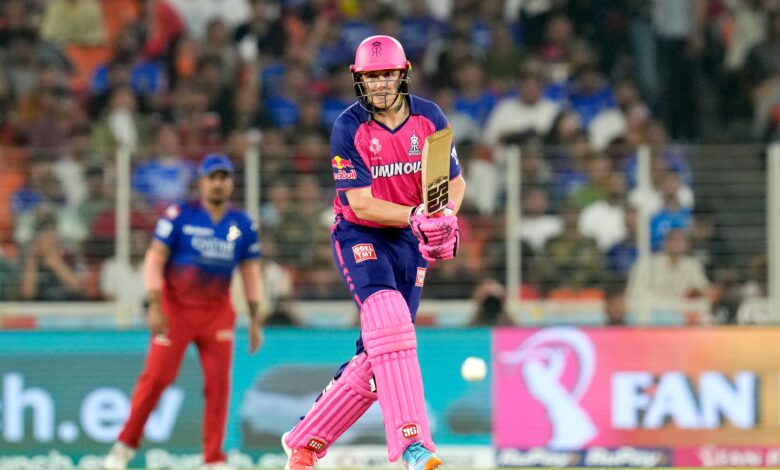 इनके अलावा कप्तान संजू सैमसन ने 13 गेंद पर 17, ध्रुव जुरेल ने आठ और टॉम कोहलर कैडमोर ने 15 गेंद पर 20 रन का योगदान दिया। अंत में रोवमन पॉवेल ने बेहतरीन सिक्स लगाकर टीम को जीत दिलाई। पॉवेल ने आठ गेंद पर 16 रनों की नाबाद पारी खेली। रॉयल चैलेंजर्स बेंगलुरु के लिए मोहम्मद सिराज ने दो, कर्ण शर्मा, लोकी फर्ग्यूसन और कैमरन ग्रीन ने एक – एक विकेट झटके।