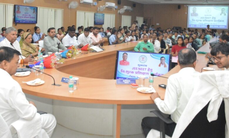 जेईई, नीट के निःशुल्क प्रशिक्षण कार्यक्रम का श्रम मंत्री श्री देवांगन के आतिथ्य में किया गया शुभारंभ