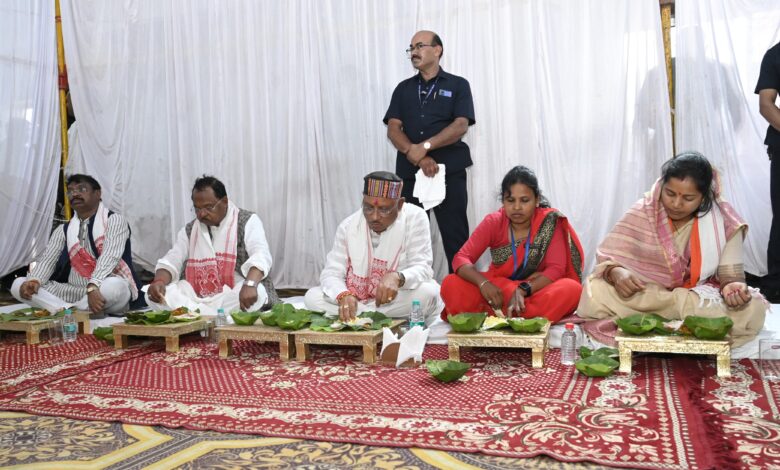 महारानी दुर्गावती के बलिदान दिवस पर आयोजित पर विचार गोष्ठी में मुख्यमंत्री श्री विष्णु देव साय ने स्वच्छता दीदियों के साथ पत्तों से बनी पतरी और दोने पर भोजन किया। जनजाति गौरव समाज की दीदियों ने मुख्यमंत्री को भोजन परोसा। इस मौके पर कृषि मंत्री रामविचार नेताम तथा महिला एवं बाल विकास मंत्री श्रीमती लक्ष्मी राजवाड़े ने भी स्वच्छता दीदियों के साथ भोजन किया।
