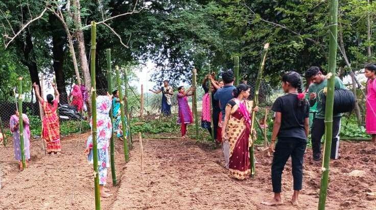 1000 दीदियों की बाड़ी में मचान विधि से लगाई जा रही है सब्जी