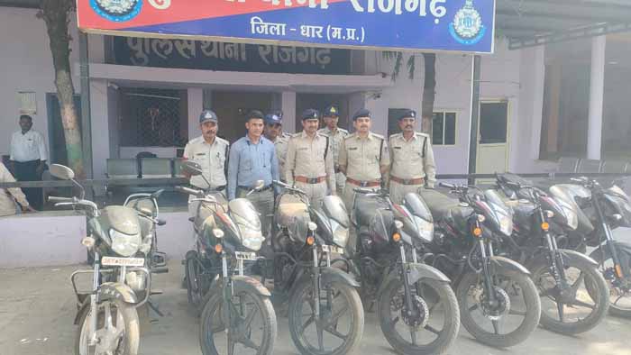 धार, झाबुआ व इंदौर से चोरी किये वाहन बरामद कर क्षेत्र मे वाहन चोरी की वारदात रोकने व चोरी करने वाले अपराधियो पर प्रभावी कार्यवाही करने हेतु पुलिस अधीक्षक धार, मनोज कुमार सिंह व अतिरिक्त पुलिस अधीक्षक देवेन्द्र पाटीदार द्वारा निर्देशित किया गया जिसके तारतम्य मे अनुविभागीय अधिकारी पुलिस सरदारपुर श्री आशुतोष पटेल के मार्गदर्शन मे थाना प्रभारी राजगढ़ कमलसिंह पंवार द्वारा क्षेत्र मे मुखबीर तंत्र को सक्रिय किया गया व दिनांक 17.05.2023 को मुखबीर सुचना पर तीन विधी विरूद्ध बालको को अभीरक्षा मे लिया गया जिनके कब्जे व निशादेही से थाना राजगढ़ से चोरी गई होण्डा शाईन मोटर सायकल जप्त की गई तथा अपचारीयो ने पुछताच मे थाना कोतवाली धार, थाना पिथमपुर, थाना जोबट अलीराजपुर व जिला इंदौर से कुल 06 मोटर सायकल चोरी करना बताया, अपचारीयो से कुल 07 मोटर सायकल किमती 5,00,000/- रूपये की बरामद की गई ।