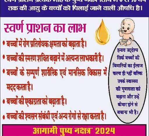 रोग प्रतिरोधक क्षमता बढ़ाने 3 अगस्त को स्वर्णप्राशन