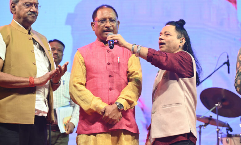 मुख्यमंत्री श्री विष्णु देव साय की मौजूदगी में आज राजधानी रायपुर के इंडोर स्टेडियम में जोहार तिरंगा कार्यक्रम का भव्य आयोजन किया गया है। संस्कृति विभाग द्वारा आयोजित इस कार्यक्रम में देश के मशहूर गायक श्री कैलाश खेर एवं साथियों ने देशभक्ति गीतों की सुरमयी प्रस्तुति दी। राष्ट्रीय गीत ‘वन्दे मातरम्‘ और ‘जान है हमारी है तिरंगा‘ गीत पर मुख्यमंत्री श्री विष्णु देव साय सहित उपस्थित लोगों ने देशभक्ति भाव से ओतप्रोेत होकर सुर से सुर मिलाया। मुख्यमंत्री श्री विष्णु देव साय द्वारा इससे पूर्व ‘जोहार तिरंगा‘ कार्यक्रम का शुभारंभ दीप प्रज्ज्वलन और छत्तीसगढ़ महतारी के छाया चित्र पर माल्यार्पण कर किया गया।