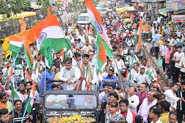 देशभक्ति के संदेश के साथ हजारों वाहनों पर तिरंगा लहराते हुए निकले युवा