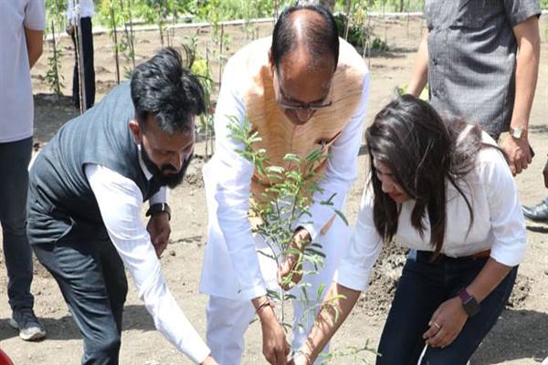 मुख्यमंत्री चौहान ने पीपल, आम और इमली के पौधे लगाए