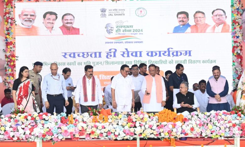 मुख्यमंत्री एवं केन्द्रीय जल शक्ति मंत्री ग्राम बरगा में आयोजित स्वच्छता ही सेवा कार्यक्रम में हुए शामिल