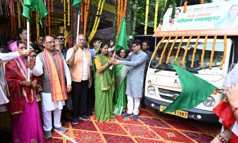 पोषण माह का शुभारम्भ मुख्यमंत्री श्री विष्णु देव साय एवं विभागीय मंत्री श्रीमती लक्ष्मी राजवाड़े द्वारा पोस्टर व वीडियो का विमोचन, पोषण रथ को हरी झंडी दिखाकर एवं पोषण शपथ दिलवाकर किया गया था।