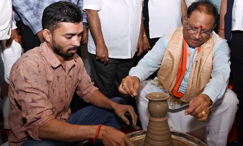 मुख्यमंत्री श्री विष्णु देव साय ने चाक पर दिखाई कलाकारी, बनाई मिट्टी की कटोरी