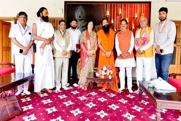 उप मुख्यमंत्री श्री राजेन्द्र शुक्ल ने पतंजलि योगपीठ हरिद्वार में योगगुरु स्वामी रामदेव और आचार्य बालकृष्ण से सौजन्य भेंट की