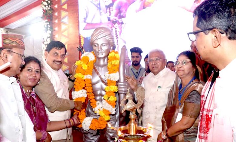 मध्यप्रदेश के शहडोल जिला मुख्यालय पर आयोजित राज्यस्तरीय जनजातीय गौरव दिवस समारोह में राज्यपाल श्री मंगुभाई पटेल, मुख्यमंत्री डॉ. मोहन यादव, उप मुख्यमंत्री एवं शहडोल जिले के प्रभारी मंत्री श्री राजेन्द्र शुक्ल, कुटीर एवं ग्रामोद्योग राज्यमंत्री (स्वतंत्र प्रभार) श्री दिलीप जायसवाल, सीधी सांसद डॉ. राजेश मिश्रा, अध्यक्ष कोल विकास प्राधिकरण श्री रामलाल रोतेल सहित जन-प्रतिनिधि मौजूद रहे। राज्यपाल श्री पटेल और मुख्यमंत्री डॉ. यादव ने कार्यक्रम का शुभारंभ दीप प्रज्ज्वलन कर किया। अतिथियों का स्वागत जनजातीय परंपरा अनुसार किया गया।