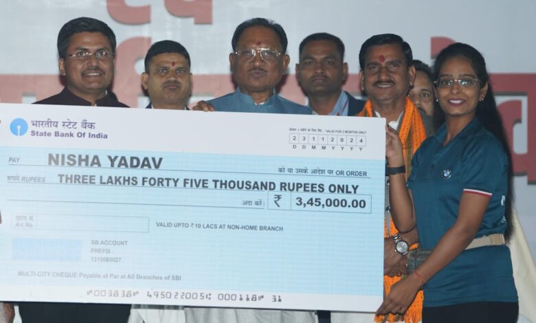 मुख्यमंत्री श्री साय ने पर्वतारोही निशा यादव को 3.45 लाख रुपए का चेक प्रदान किया