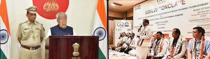 राज्यपाल विश्वभूषण हरिचंदन आज बिलासपुर में आयोजित जी-20 लेबर 20 कॉन्क्लेव में मुख्य अतिथि के रूप में वर्चुअल तरीके से शामिल हुए। यह कार्यक्रम भारतीय मजदूर संघ (बीएमएस) के सहयोग से नेशनल फ्रंट आॅफ इंडियन ट्रेड यूनियन (एनएफआईटीयू) द्वारा आयोजित किया गया। इस अवसर पर राज्य गौ सेवा आयोग के अध्यक्ष महंत रामसुंदर दास, छत्तीसगढ़ राज्य भवन एवं अन्य सन्ननिर्माण मंडल के अध्यक्ष सन्नी अग्रवाल उपस्थित थे।