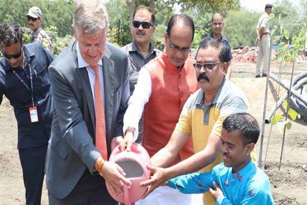मुख्यमंत्री चौहान के साथ यूनाइटेड नेशंस एनवायरमेंट प्रोग्राम के कार्यकारी निदेशक एरिक सॉल्हेम ने लगाए पौधे