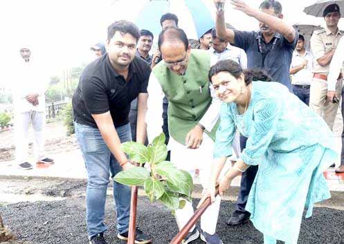 मुख्यमंत्री चौहान ने आंवला, करंज और बरगद के पौधे रोपे