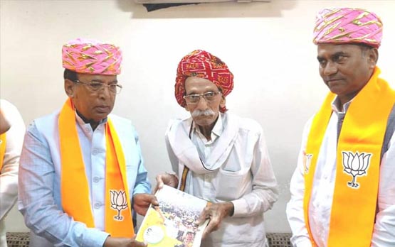 भाजपा का विशेष महा जनसंपर्क अभियान के तहत केंद्रीय राज्य मंत्री वरिष्ठ चिकित्सक व किसान निवास पंहुचकर पत्रक भेंट किया
