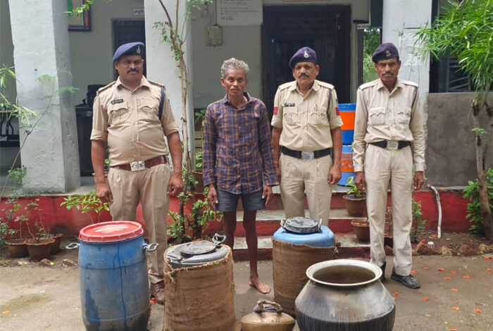पुलिस ने अवैध शराब बनाते आरोपी को पकड़ा 70 लीटर कच्ची शराब के साथ उपकरण जप्त ,1400 किलो महुआ लहान किया नष्ट