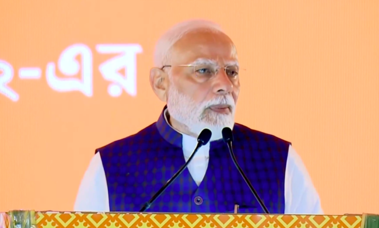 जनसभा में पीएम मोदी ने टीएमसी पर साधा निशाना परियोजनाओं के उद्घाटन के बाद, एक जनसभा को संबोधित करते हुए पीएम मोदी ने तृणमूल कांग्रेस (टीएमसी) पर जमकर निशाना साधा। उन्होंने कहा कि केंद्र सरकार घुसपैठियों के खिलाफ अभियान चला रही है, लेकिन टीएमसी, कांग्रेस और इंडी अलायंस वोट बैंक की राजनीति के लिए घुसपैठ को बढ़ावा दे रहे हैं।