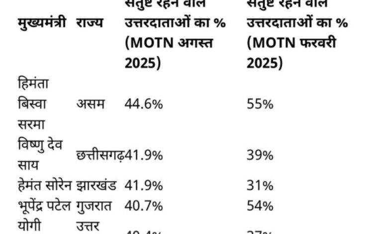 इंडिया टुडे–MOTN सर्वे: छत्तीसगढ़ के CM विष्णु देव साय को गृह राज्य में 41.9% लोगों ने बताया संतुष्ट — बड़े राज्यों में दूसरे स्थान पर