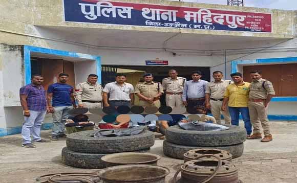 जिनकी निशानदेही पर टायर बरामद किये गये हैं। महिदपुर थाना प्रभारी सुरेन्द्र गढ़वाल ने बताया कि गिरफ्त में आये आरोपी ट्रक चलाने और ऑटो गैरेज संचालित करने का काम करते हैं। आरोपियों ने कबूल किया कि रात में वारदात करने के दौरान दो साथी आने-जाने वाले और पुलिस पर नजर रखते थे। तीन साथी वारदात को अंजाम देते थे। थाना प्रभारी के अनुसार तीन आरोपियों के खिलाफ पूर्व में अपराध दर्ज हैं।