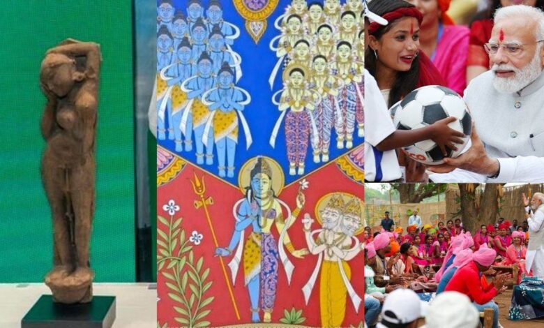 अमेरिका द्वारा भारत को लौटाई गई मूर्तियों में एक मूर्ति का नाता मध्य प्रदेश से है यह भी प्रधानमंत्री ने बताया। वहीं फिर एक बार शहडोल जिले के विचारपुर गांव जिसे मिनी ब्राजील के नाम से जाना जाता है उसका जिक्र करते हुए बताया कि कैसे यह गांव नशे से मुक्त होकर फुटबाल से प्रेम करने लगा।