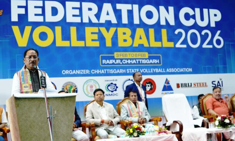 रायपुर. 3 फरवरी 2026. मुख्यमंत्री श्री विष्णु देव साय ने आज रायपुर के सरदार बलबीर सिंह जुनेजा इंडोर स्टेडियम में 37वीं फेडरेशन कप व्हॉलीबॉल चैंपियनशिप का उद्घाटन किया। छत्तीसगढ़ राज्य व्हॉलीबॉल एसोशिएशन द्वारा 3 फरवरी से 8 फरवरी तक इसका आयोजन किया गया है। चैंपियनशिप में भारत के लिए खेल चुके कई अंतरराष्ट्रीय खिलाड़ियों के साथ कुल 16 टीमें भाग ले रही हैं। रेलवे, सर्विसेस और इंडियन यूनिवर्सिटी सहित कई राज्यों की टीमें इसमें भागीदारी कर रही हैं। पुरुष वर्ग में 10 टीमें और महिला वर्ग में 6 टीमें हिस्सा ले रही हैं।