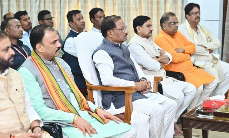 मुख्यमंत्री श्री विष्णु देव साय ने आज राजधानी रायपुर स्थित मुख्यमंत्री निवास कार्यालय में जनप्रतिनिधियों एवं गणमान्य नागरिकों के साथ प्रधानमंत्री श्री नरेंद्र मोदी के लोकप्रिय रेडियो कार्यक्रम ‘मन की बात’ के 131वें एपिसोड का श्रवण किया। इस अवसर पर केंद्रीय राज्य मंत्री श्री तोखन साहू, स्वास्थ्य मंत्री श्री श्याम बिहारी जायसवाल, पर्यटन मंत्री श्री राजेश अग्रवाल, विधायक श्री प्रबोध मिंज, छत्तीसगढ़ बेवरेज कॉर्पोरेशन के अध्यक्ष श्री श्रीनिवास मद्दी, छत्तीसगढ़ आदिवासी स्थानीय स्वास्थ्य परंपरा एवं औषधि पादप बोर्ड के उपाध्यक्ष श्री अंजय शुक्ला, श्री अखिलेश सोनी सहित अनेक जनप्रतिनिधि एवं गणमान्य नागरिक उपस्थित थे।