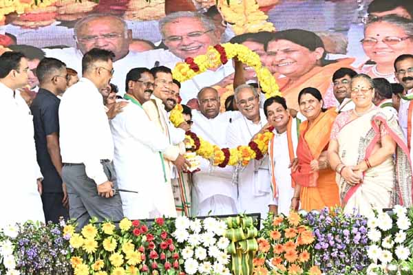 मल्लिकार्जुन खडगे ने कहा कि आजादी के बाद से हमने एम्स बनाया, स्कूल, कॉलेज, यूनिवर्सिटी खोली। बड़े बड़े कारखाने, टेक्सटाइल यूनिट बनाए, औद्योगिकरण को बढ़ावा दिया। देश को आगे बढ़ाने का काम किया। पंडित जवाहर लाल नेहरू और सरदार वल्लभ भाई पटेल ने पब्लिक सेक्टर को मजबूती देने का काम किया। किंतु आज स्थिति बदल रही है। भांगड़ा नागल,हीराकुंड बांध से लेकर भिलाई इस्पात संयंत्र हमारी सरकार ने बनाया है। उन्होंने कहा कि भरोसा का सम्मेलन इसलिए हो रहा है क्योंकि जो भरोसा मुख्यमंत्री श्री भूपेश बघेल और उनकी सरकार ने आपको दिया है उसे पूरा किया। पिछले 70 सालों में हमने जो शिक्षा की बुनियाद रखी उसी बुनियाद पर चलकर मोदी जी देश के प्रधानमंत्री बने। प्रधानमंत्री कहते थे कि 15-15 लाख प्रत्येक के खाते में आयेंगे, लेकिन अभी तक नहीं आया। हर साल दो करोड़ नौकरियां देंगे कहा था । 9 साल बीत गये 2करोड़ नौकरी किसी को मिला? प्रधानमंत्री झूठ बोल रहे है। प्रधानमंत्री ने जो भरोसा दिया एक भी पूरा नहीं हुआ। हमारे भूपेश बघेल और उनके मंत्री मंडल ने जो भरोसा दिया करके दिखाया। आने वाले चुनाव में इससे भारी बहुमत से कांग्रेस की सरकार बनायेंगे ऐसा मुझे विश्वास है।