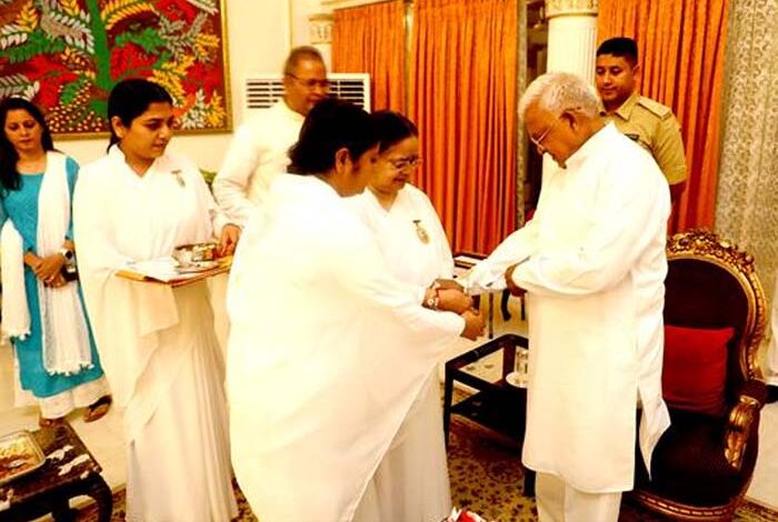 राज्यपाल मंगुभाई पटेल ने रक्षाबंधन का पर्व राजभवन में मनाया। रक्षा-बंधन के मौके पर आज एस.ओ.एस. चिल्ड्रन्स विलेज खजुरी कला की बालिकायें, प्रजापिता ब्रह्मकुमारी ईश्वरीय विश्वविद्यालय के पदाधिकारी राजभवन पहुंचे। राज्यपाल मंगुभाई पटेल को रक्षासूत्र बांध कर परम्परागत स्वरुप में रक्षाबंधन का उत्सव मनाया।