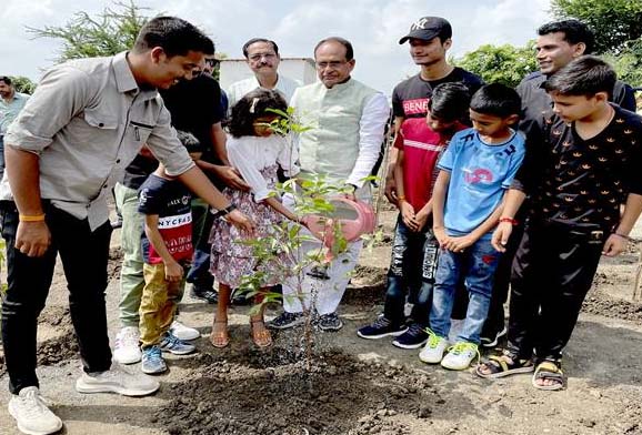 मुख्यमंत्री चौहान ने करंज, कदम्ब और गुलमोहर के पौधे रोपे