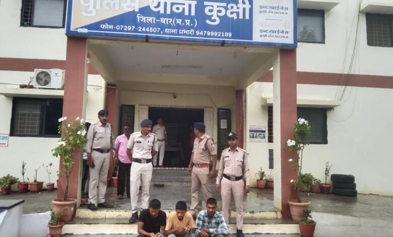 आरोपियों के नाम – वाराणसी उर्फ रमेश उम्र 27 वर्ष जाति भी भील निवासी गोराडिया थाना टांडा, केबिन पिता नगर सिया भूरिया 19 वर्ष थाना टांडा, उदय सिंह उर्फ उड़ान पिता मोटे का भील निवासी गोराडिया थाना टांडा जिला धार अपराध प्रेफरेंस नंबर-609/23 धारा 457,380 ipc तहत प्रकरण दर्ज किया