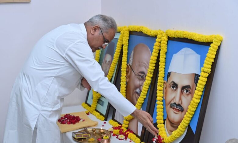 मुख्यमंत्री श्री बघेल ने महात्मा गांधी के देश के लिए अमूल्य योगदान को याद करते हुए कहा कि गांधी जी ने भारत में स्वाधीनता आंदोलन को नई दिशा दी। उन्होंने सत्य, प्रेम और अहिंसा का मार्ग अपनाकर पूरे विश्व के सामने मिसाल कायम की। उन्होंने देश में जिस ग्राम स्वराज की कल्पना की थी, छत्तीसगढ़ सरकार उसे पूरा करने की दिशा में आगे बढ़ रहा है। मुख्यमंत्री ने पूर्व प्रधानमंत्री स्वर्गीय श्री लाल बहादुर शास्त्री को स्मरण करते हुए कहा कि शास्त्री जी ने सादगी से जीवन जिया और अपना पूरा जीवन गरीबों की सेवा में अर्पित कर दिया। वास्तव में वे सच्चे गांधीवादी थे। उन्होंने भारतीय स्वाधीनता संग्राम में उनका महत्वपूर्ण योगदान था। उन्होंने वर्ष 1965 के भारत-पाकिस्तान युद्ध के समय देश को कुशल नेतृत्व प्रदान किया और जय जवान-जय किसान का नारा देकर जनता का मनोबल बढ़ाया, जिससे सारा देश एकजुट हो गया। श्री बघेल ने कहा कि शास्त्री जी जैसे कर्मयोगी सदा लोगों को प्रेरित करते रहेंगे।